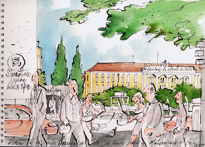 Devo dizer que os bastidores sempre despertaram em mim uma grande curiosidade. O que está por trás, aquilo que não se vê, os pequenos pormenores, aquilo que não interessa à maior parte das pessoas sempre me interessou a mim. Vem isto a propósito do concerto dos Xutos & Pontapés do passado Sábado. O primeiro concerto que vi deles foi em 1984 ( ou será 85? ) no saudoso Rock Rendez-vous na rua da Beneficência, ao Rego, já lá vão uns aninhos e de tal forma foi especial que depois assisti a uma boa dezenas deles pelo país. Os Xutos tinham então uma imagem de irreverência e de culto, associada a uma mão cheia de músicas que funcionavam como grandes hinos. Nunca tive uma relação de fã no sentido clássico do termo mas sentia-me parte da família. Esse sentimento nunca se desvaneceu. Acho que os Xutos conseguiram envelhecer no meio musical, que convém dizer não é uma coisa que está ao alcance de muitos ( mesmo no estrangeiro ) e envelheceram bem, que é como quem diz, sem amarguras , nem frustrações e sempre com um continuado prazer pela vida, pela música e por aquilo que fazem. Depois de ver tantos concertos decidi não perder este, começando e acabando numa viagem pelos .......bastidores. O concerto propriamente dito acabei por não ver, por razões que agora não vem ao caso. Foi uma espécie de Xutos À MINHA MANEIRA. São alguns desenhos dessa minha viagem que agora aqui deixo .......... X